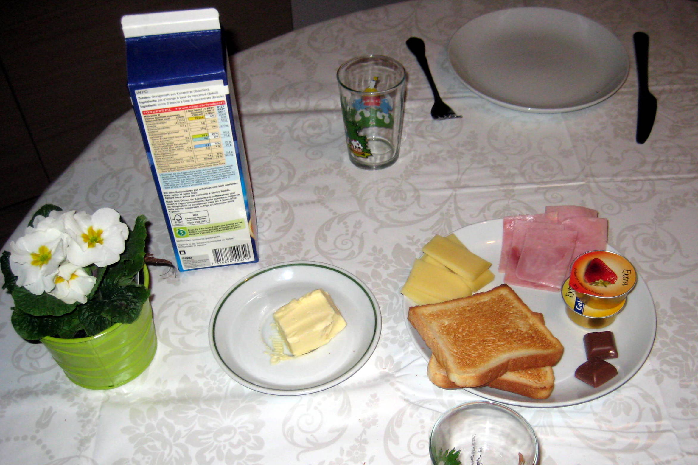 Our first Swiss breakfast – cheese & chocolate!